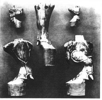 "Ivory chair legs in the form of bull's legs from the Dynasty I royal tombs at Abydos"